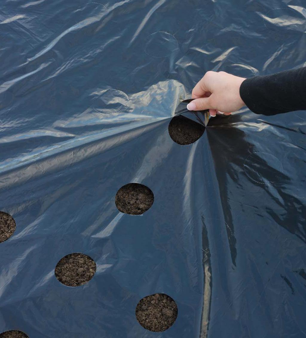 ALL CROPS - LDPE / LLDPE mulching film, black, 20 μ anti UV, caps to be removed - 40 x Ø 60 mm - 0,95 x 10 m