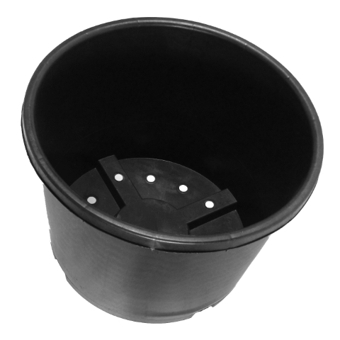 Schwarzer Pflanztopf mit Kreuzboden und Entwässerungslöchern. Inhalt: 90 l