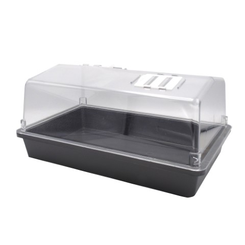 Grow seeds and cutting plants with this propagator by Nature made of durable, injection-moulded rigid recycled polypropylene (PP). The greenhouse has a transparent lid of polystyrene (PS) with two sliding aerators for optimal adjustment of temperature and humidity variations. Easy to clean for reuse, Colour: anthracite. The mini-greenhouse has a size of H18x37,5x24cm.