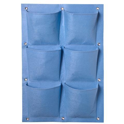 Vertical garden wall planting bag in purple felt with 6 pockets.