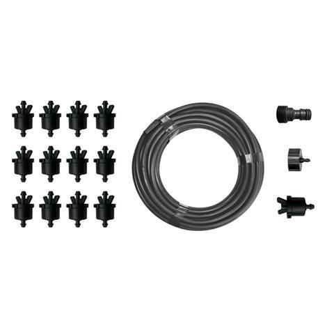 The drip irrigation system is suitable for the vertical garden set and ensures that there is water in every pot. The system must be connected to a tap The drip irrigation system is suitable for 13 pots.