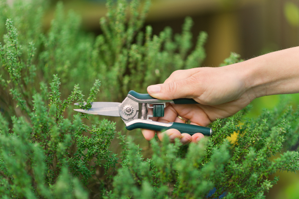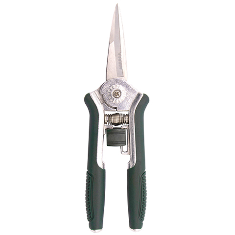 Garden/herb scissors by Nature with straight blades, for herbs and for pruning and stripping small plants, cut max. Ø 4 mm. Handles made of aluminium and green rubber, blades made of polished stainless steel, dimensions H 16 x 5 x 1.4 cm.