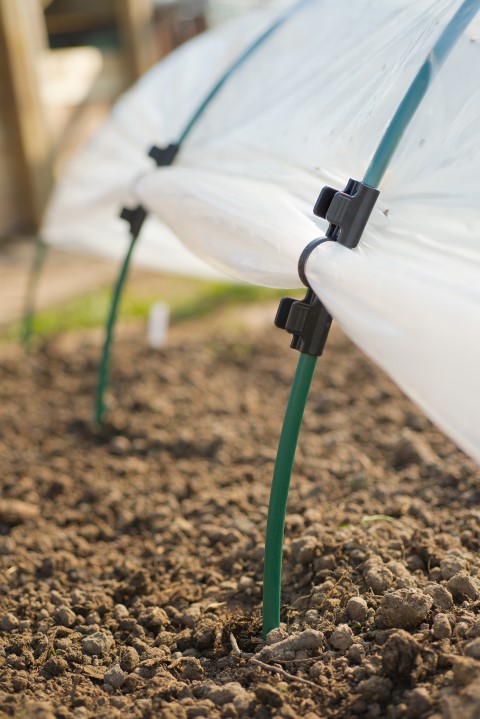 Rigid, preformed arch by Nature for the construction of a cultivation tunnel. The arch is made of green plastic coated galvanised steel. L120cm x Ø8mm, H48x56cm.