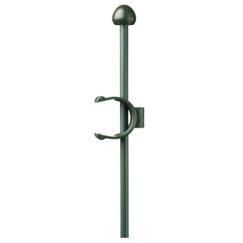 Plant stake with handy adjustable clip for attaching rings. The green plant support is made of durable, galvanised steel that is green PE-coated. The clip makes it possible to attach several rings (of different sizes) to the same plant support. These rings provide support and are ideal for plants with intensive flowering. Dimensions H150 x Ø 8 mm.