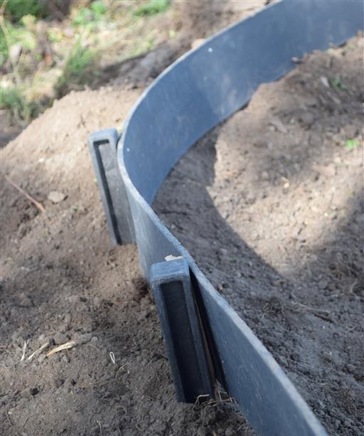 Solid stake of high-quality by Ubbink from recycled PE, which provides perfect stability for the installation of the rolled or straight border. To be inserted directly into the ground every 50 cm to 2 m and fixed tot the border with stainless steel screws (ideally 2 screws per post). Size H38x3,7x3,5cm.