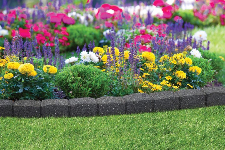 Nature bordure de jardin en caoutchouc recyclé à 98,5%, recyclable, durable et résistant aux UV. Décor pavé de granite, coloris gris. Elles se posent sur toutes surfaces et sont recoupables dans la longueur avec une scie égoïne. Piques de fixation incluses. Dimension: H8 x 122 x 7 cm.