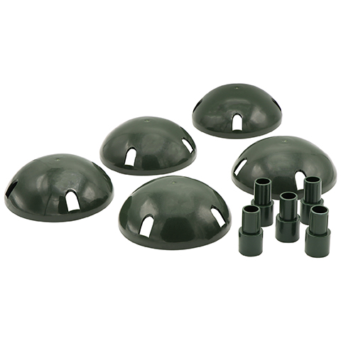 Demi-sphère de Nature est un support de filet 14,5cm de diamètre pour soutenir à distance des cultures, filets anti-oiseaux, anti-insectes et autre voiles. S'emboite dans un tuteur Ø16mm, à enfoncer dans le sol. Disponible en lot de 5 pièces: 1 destinée à être positionnée au milieu de la surface à protéger, et les 4 à chaque extrémité.