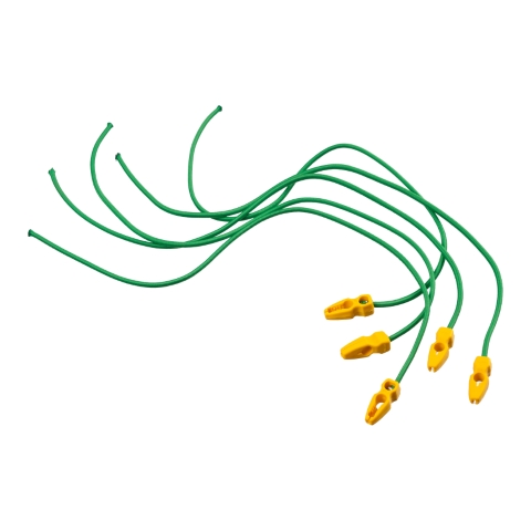 Jeu de 5 liens élastiques de Nature avec système de clip de fixation jaune pour tenir ensemble, par example un rouleu de tuyau d'arrosage. Les liens élastiques verts pratiques et solides sont faciles à utiliser et peuvent être utilisés de plusieurs façons. Dimension Ø5mm x 65cm par lien.