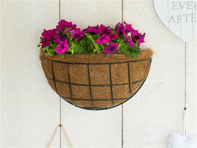 Natte en coco préformée modèle murale de Nature avec un film plastique qui la rend étanche, pour corbeille jardinière, dimension: H17 x 60 x 20 cm. La natte a une bonne capacité à retenir l'eau et prévient dessèchement rapide de terreau.